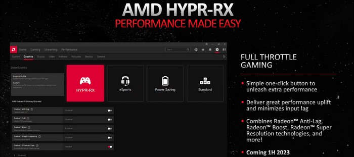 去年11月时,AMD 在发布 FSR 3.0 超分技术同时,还介绍了 HYPR-RX 一键超频技术,宣布将于2023年上半年推出。
