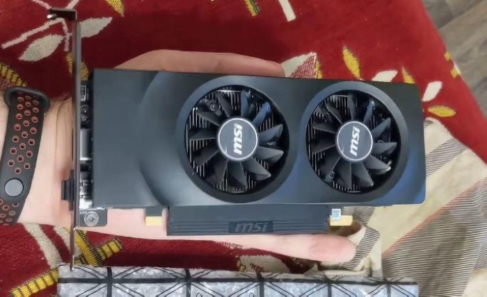 个头不大,很矮,占用双槽空间,配两把小风扇,支持智能启停,可以低负载时停转。风扇的尺寸未知,目测在4-5厘米左右,无背板加固,尾部提供HDMI和DP输出。