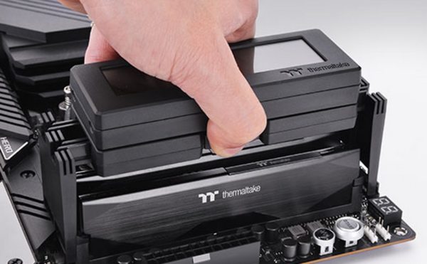 具体来说,它顶部集成了一块 3.9英寸 LCD 彩屏,可以设置静态、GIF动态的图案,当连接至 TT RGB Plus 程序后,可以迅速监控 PC 运行状态,显示CPU、内存、显卡以及电源和风扇等运行情况。