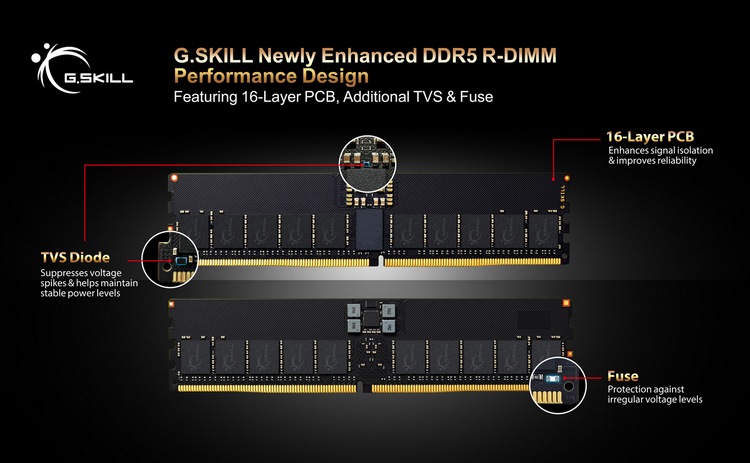 芝奇今天发布了增强版 DDR5 R-DIMM 内存解决方案,更耐用,更稳定,更安全,该方案内存针对工作站和企业用户内存。