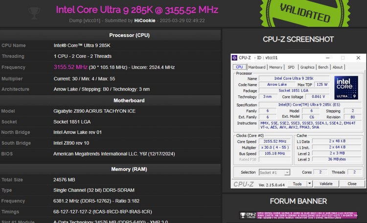 最后,测试平台用的是英特尔酷睿 Ultra 9 285K、Z890 AORUS TACHYON ICE 主板,其他配置没说。