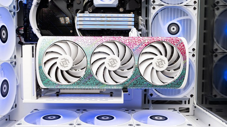两款都属于 XGAMING 系列,最具年轻化特质,以”打破硬件与潮流次元壁”为核心设计理念,通过高饱和度撞色拼接、模块化几何分割等手法,颠覆传统显卡工业设计的冷峻感。