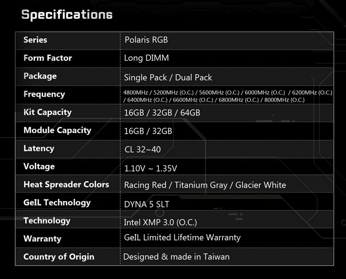 金邦(GeIL)宣布将推出 EVO V 和 Polaris RGB DDR5系列高端内存,最高8000MHz主频,为游戏玩家。