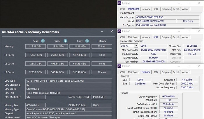 全系支持英特尔XMP 3.0超频,颗粒精挑,集成先进PMIC(电源管理IC),下面是在华硕ROG MAXIMUS Z790 APEX 主板完成的拷机测试。