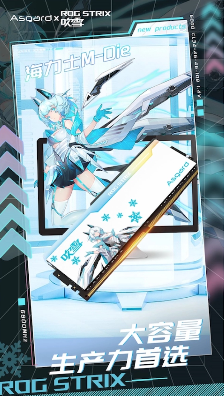 考虑到华硕 ROG STRIX “吹雪”系列影响力,阿斯加特宣布联合华硕,带来了“吹雪”联名款 DDR5 内存,白色风格,和华硕吹雪系列主板、显卡很搭。