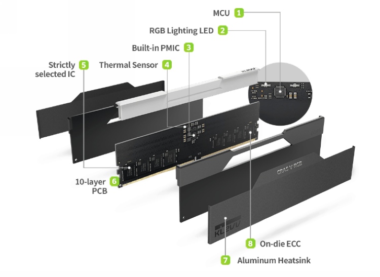 海力士旗下游戏品牌科赋(KLEVV),日前发布了新款 CRAS V RGB 系列内存,有 DDR5-8200 / 8400 MHz 以及黑(obsidian Black)/ 白( Brilliant White)两款,都针对高玩。