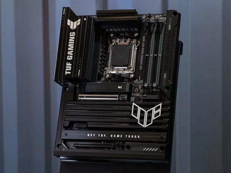 另一块 TUF Gaming B850-BTF Wifi 定位稍低一些,针对主流游戏玩家,设计风格完全不同,属于 TUF GAMING 电竞特工系列,号称是高性价比 B850 电竞主板。