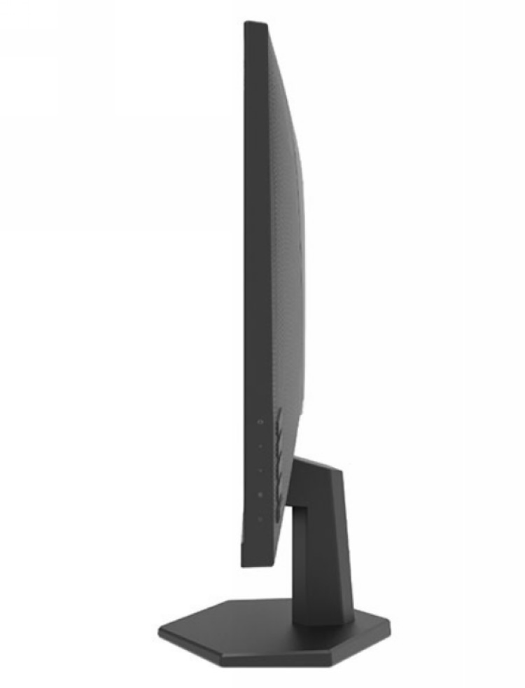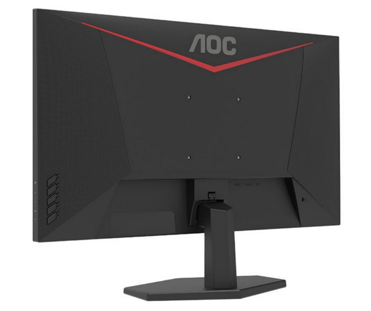 外观一模一样,也是爱攻系列的不规则切边小底座,屏幕三边窄边框,背后有少许红色点缀,但没有任何 RGB灯效,支架也不支持多向调节,只允许简单俯仰角调节,但支持 VESA 100mm 壁挂。