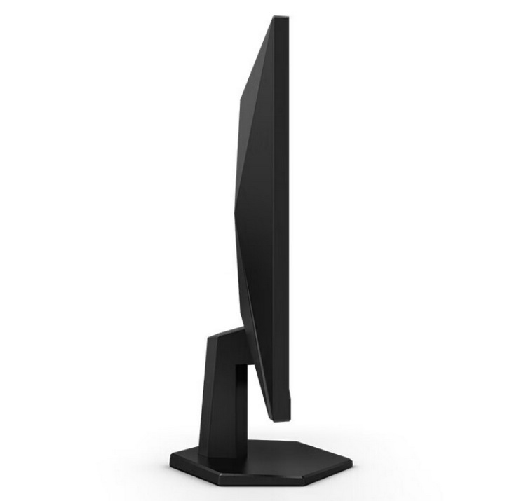 外观相对一般,几何钻切风格,三边窄边框(6.2mm),但支架不能多向调节,只能简单俯仰角,或者 VESA 100mm 壁挂。