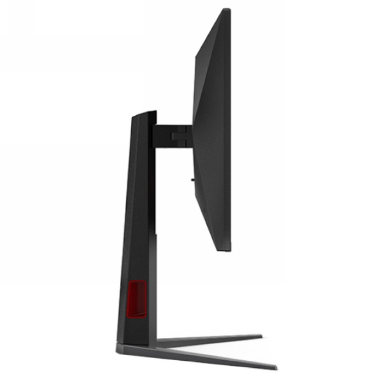 比较战斗,三边窄边框,有红色束线孔,支架可多向调节,可以13cm高低升降,水平以及俯仰角和垂直旋转,也支持 VESA 壁挂。