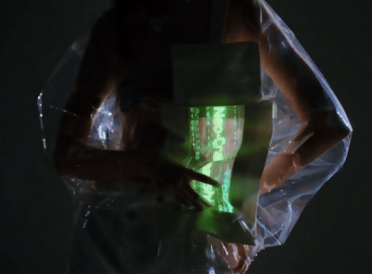 设计师将屏幕缝合在衣服、袖子或包包上,可以自由显示丰富内容。所用的屏幕尺寸为12英寸,可以拉伸至14英寸,可以任意弯折形变,还能保持色彩、画面分辨率等不变,分辨率没说,像素密度维持在100ppi ,显示画质很细腻。