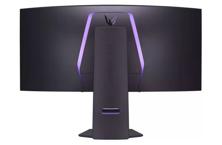 外观设计模具不变,还是宽大的L型支架,背后带有 RGB灯效,高曲率曲面屏,屏幕四边窄边框,支架可以多向调节。