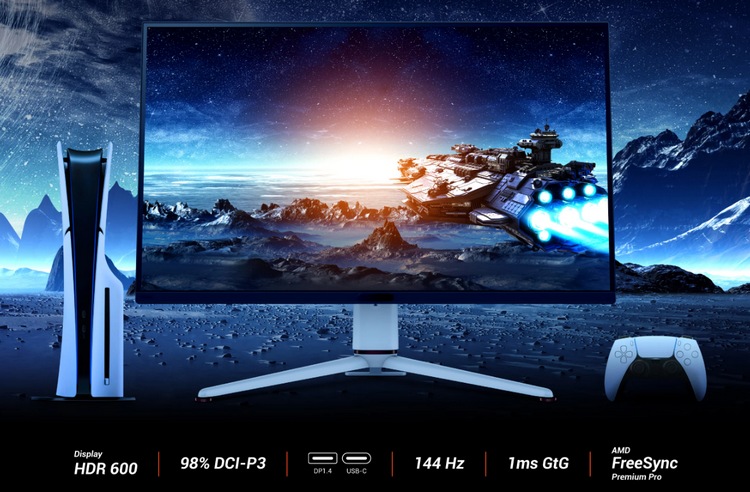 游戏方面,支持 144Hz 刷新率,1Ms 灰阶响应,还支持 AMD FreeSync Premium Pro 防撕裂技术。此外,还有游戏模式、暗黑提亮、自动调节亮度和色温功能。