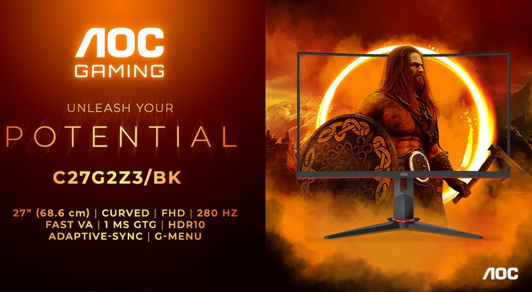 AOC GAMING C27G2Z3/BK 将于7月上市,售价199.99英镑(约1840元),三年质保。