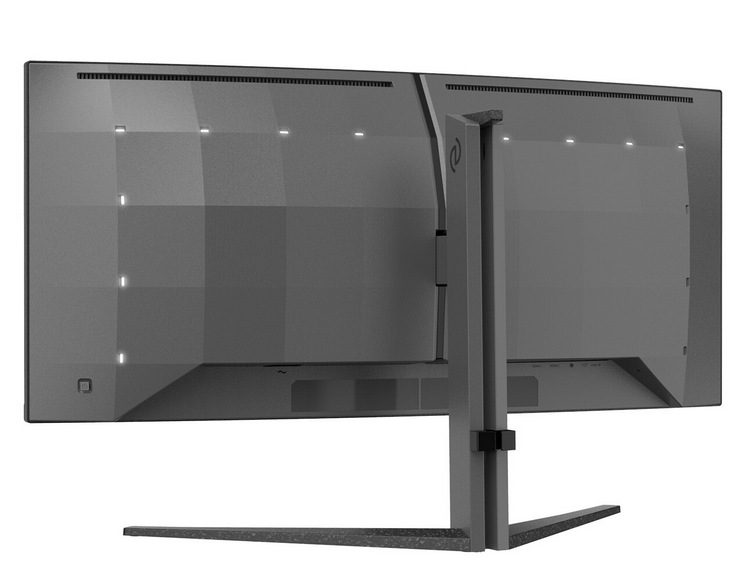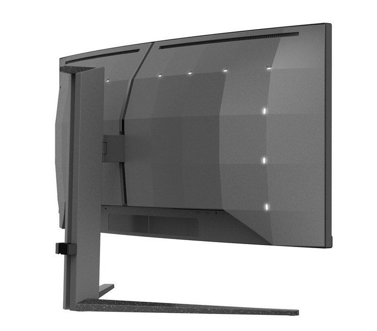 Evnia 家族设计,三边窄边框,背后方形曲面设计,带有氛围灯装饰(有音乐律动和游戏随动闪烁),支架可多向调节,并有束线设计。