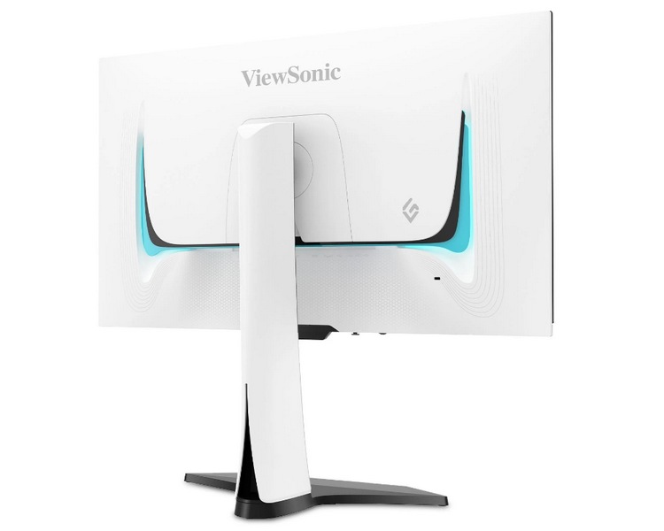 外观设计很不错,黑白撞色处理,背后是白色的,扇形支架,支持多向调节,背后还有RGB灯效点缀。值得一提的是,底座上集成了OSD控制按键,还提供游戏模式、RGB灯效切换等,这个设计很少见。