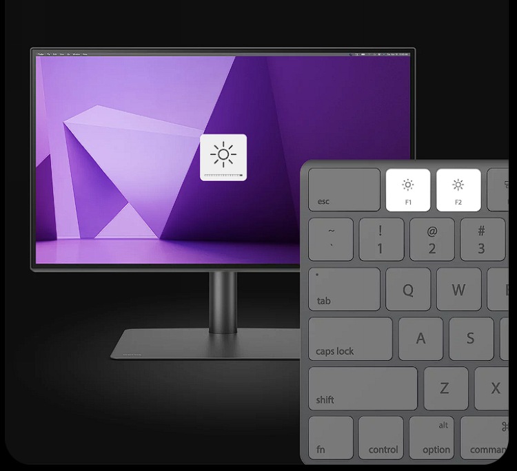 专为专业屏,它集成了Display ColorTalk 软件,无需校色仪也可轻松匹配显示器和 MacBook Pro之间的颜色。另外还提供 iKeyboard Control 功能,可通过 MacBook 键盘轻松调节亮度和扬声器音量。