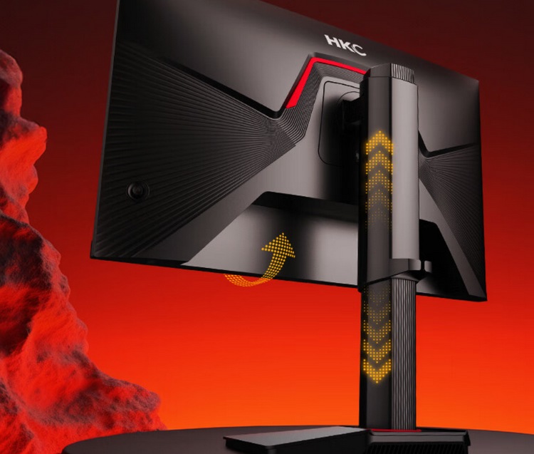 这款 G24H2 三边无边框设计,高屏占比高,组建多联屏效果很好。底座是钻砌风格,背后有机甲纹理,自带支架可以多向调节,支持升降和垂直90度竖屏旋转。