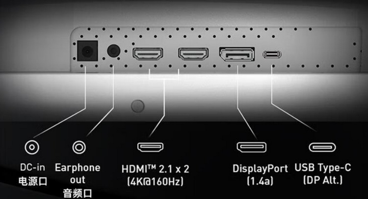 扩展方面,包括双满血 HDMI 2.1(48Gbps 带宽)、DP 1.4、全功能USB-C接口(可惜只有15W)和音频输出接口。