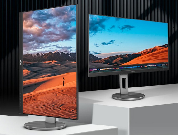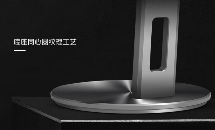 外观像专业设计屏,灰黑配色,屏幕三边窄边框(5.8mm),支架可以多向调节和快速拆卸,可以垂直90度旋转当竖屏用。