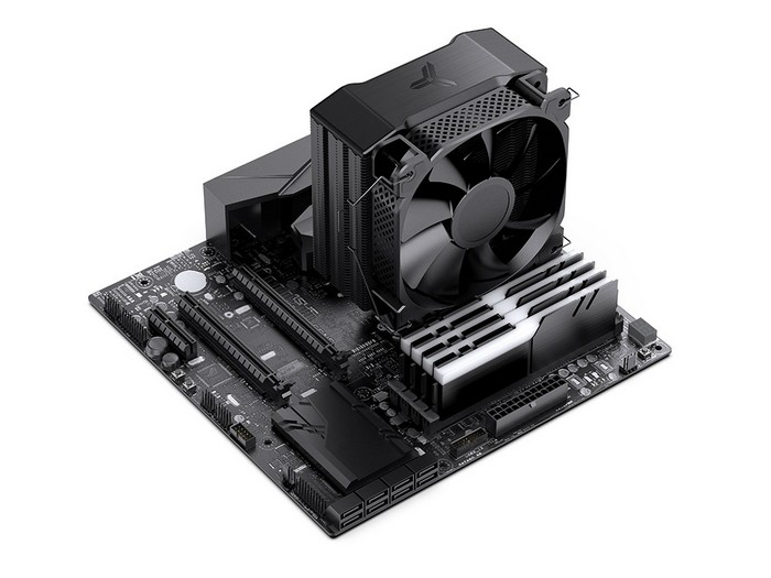 通体黑,风扇以及热管都是黑色的,都涂有抗氧化层。机身紧凑,属于紧凑型单塔,尺寸为宽128 x 75 x 158mm,重704克,不遮挡旁边的内存、显卡或M.2 SSD等。