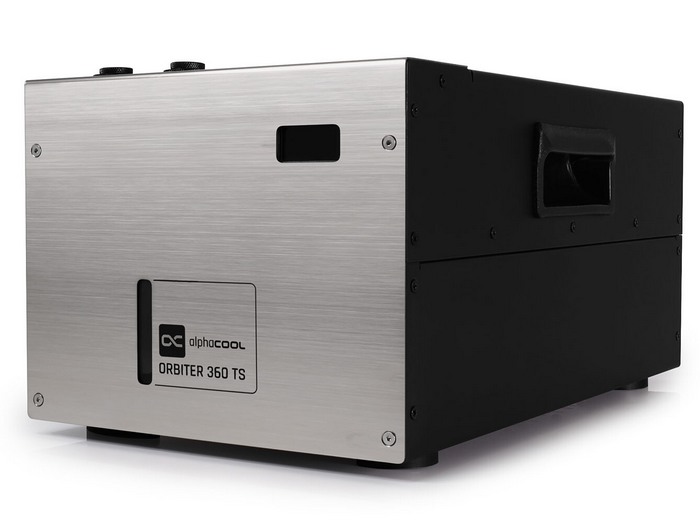而现在,Alphacool(阿尔法酷)发布了一款比较方便装配的外置水冷系统——Orbiter 360 TS ,个头不大,方便外接,采用纯铜散热器,有两组120mm全紫铜材质打造的冷排,有三把Alphacool Core 120风扇,就像夹心饼干一样三把风扇和两组120mm冷排堆叠在一起。