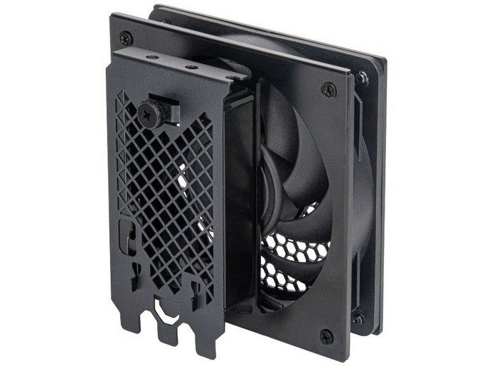 为此,银欣近日发布了一款有意思的套件,型号FDP02 (型号 SST-FDP02B),可以装在尾部显卡扩展区域,可以将热量抽出来。