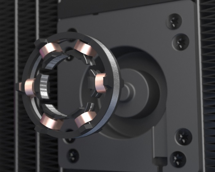 水泵不在冷头上,而是内嵌在冷排上,内采用三相6级电机,转速4000rpm±10%,泵扬程和噪音没说。