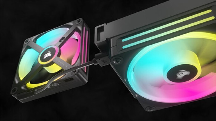 这个系列的产品具有高度简洁化、集中控制和强大的可玩性等特点。首发有无传统供电排线的RGB风扇(依靠触点)、水冷头、水箱和散热器等,都采用简单快速连接方案,总之就是能更简洁的走线,简化装机流程,并且通过iCUE系统更轻松快速的管理控制所有配件。