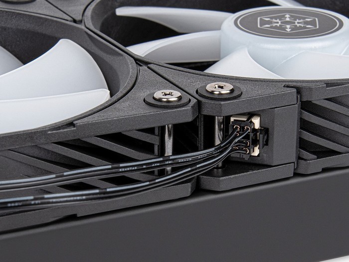 风扇采用模块触点+磁吸式固定方式,可以任意调整旋转角度,看不到繁杂的连接线,也很容易安装,银欣考虑的很周到。风扇规格也公布了,转速500~2800rpm,最大风量为17.2CFM,最大静压为2.0mmH2O,最大噪音为28.2dBA。