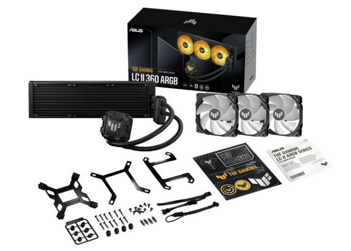 TUF Gaming LC II 360 ARGB “破冰手”配备 360mm 铝制水冷,由三把 120 毫米 ARGB 风扇压制,风扇扇叶优化,末端有沟槽,改善风压、同时降低噪音。另外,风扇符合IP5X防尘认证。
