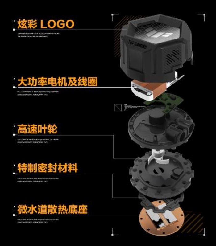 水冷头内采用大功率电机及线圈,配有高速叶轮,特制密封材料,纯铜微水槽,确保高效、低噪和耐用性,承诺6年质保(直接换新)。