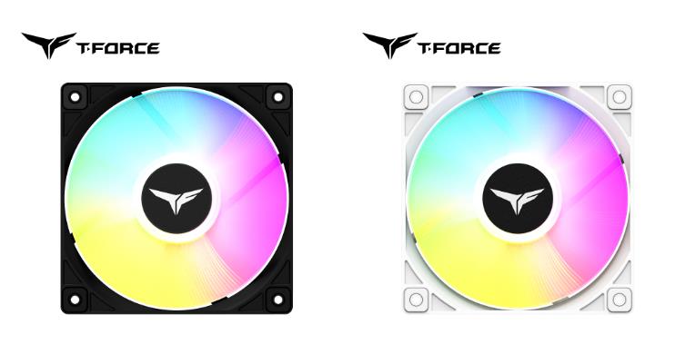 十硂 T-FORCE RT-X120 ARGB 风扇有黑和白两个配色,连体扇叶,优化降噪和垂直风压。采用液压轴承,支持PWM温控,承诺5万小时无故障运行寿命。风罩和扇叶都有RGB灯效,支持背光同步,可用驱动自定义。