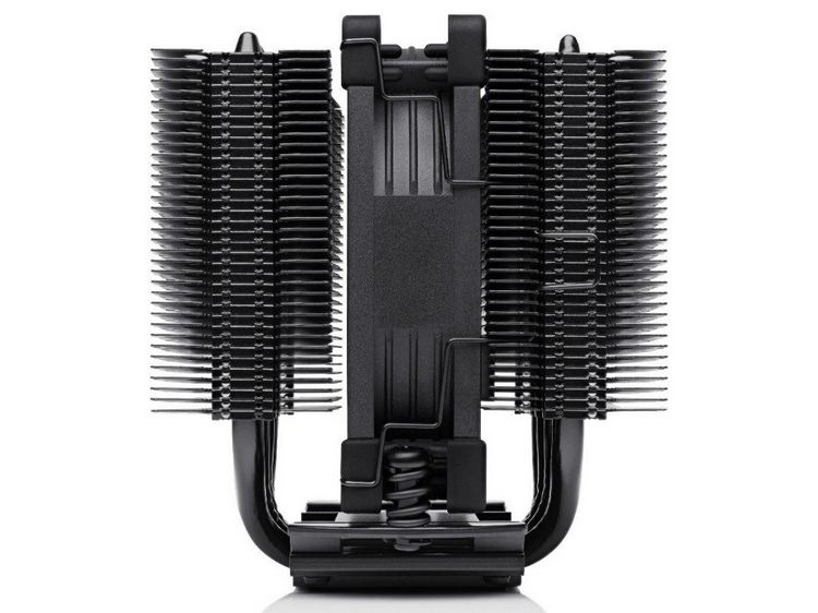 全黑化处理,热管也黑化,只有中间一把风扇,当然你也可以自己添加风扇,但需要注意内存的兼容性,所以只建议上92mm直径的小风扇。