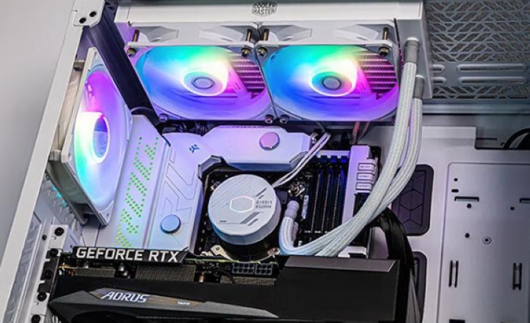 采用全新极简设计,有黑和白两色可选,其中白色版本很特别,冷头、冷排以及管道都是白色的,白色主题很适合。