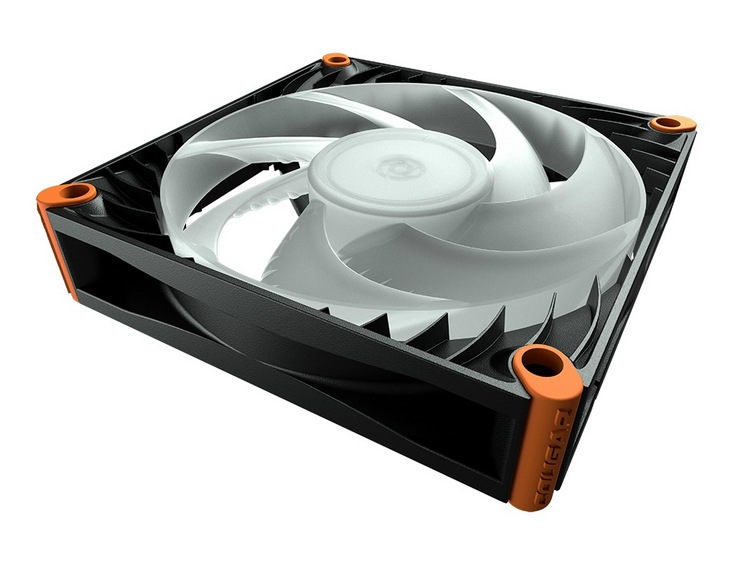 更特别的是风扇,扇叶连体设计,重点是框架四角有多道弧形风槽,官方表示这种设计借鉴了飞机引擎空气动力学原理,让风扇旁边的风更容易流动起来,从而形成一个更合理的“凹陷”风区,这样的话可以减少扇叶摩擦,降低噪音,同时提升性能。