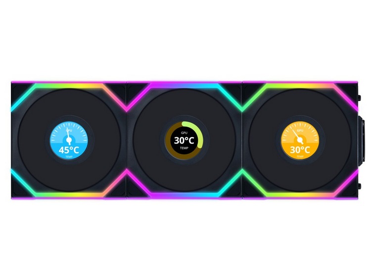 这个系列有普通版本和LCD版本,后者在扇叶中心部分还有LCD屏,可以显示运行状态温度等。另外,都提供黑/白两色和正/反叶版本,满足各种装机需求。