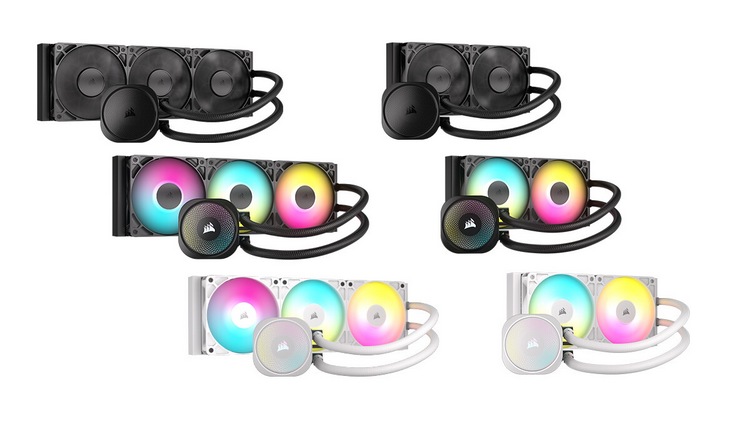 不论标准版还是 ARGB 版本,都提供 240mm 和 360mm 版本,都配备海盗船RS120风扇,支持PWM温控,最高转速2100rpm。此外,RGB版本的风扇有LED灯珠,支持自定义灯效,但应该不支持 iCUE 背光生态系统。