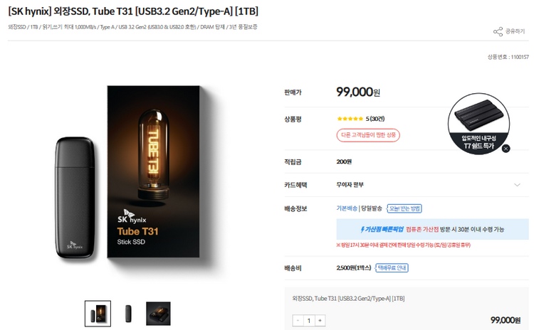 Tube T31已经率先在韩国市场首发,512GB版本卖99000 韩元,约530元,3年质保;比之前的 Beetle X31 (1TB卖699元)贵不少,感兴趣的小伙伴等等看。