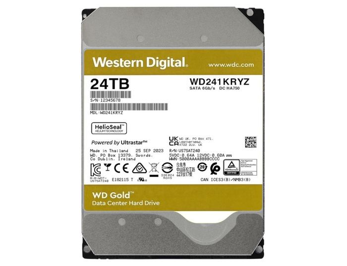 去年11月发布的西数金盘24TB 最近全球市场开始陆续发货了,售价比预期的略低,卖 629.99美元(约4530元)。