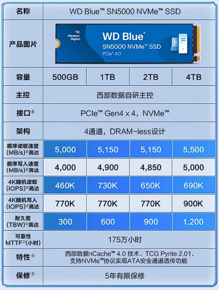 西数推出了全新的 WD Blue SN5000 固态硬盘,最早在 Computex 大会期间看到,主打性价比,可视为 SN580 的继任者。