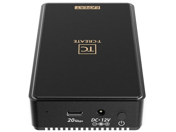 尾部有电源按键,还有个DC 12V独立供电圆孔,旁边是USB 3.2 Gen 2×2 TYPE-C接口。