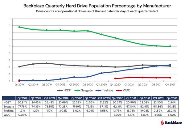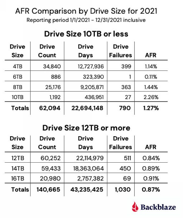 他们分析指出,故障率下降是因为容量较大的新硬盘更耐用了,占所有硬盘总量的69%。