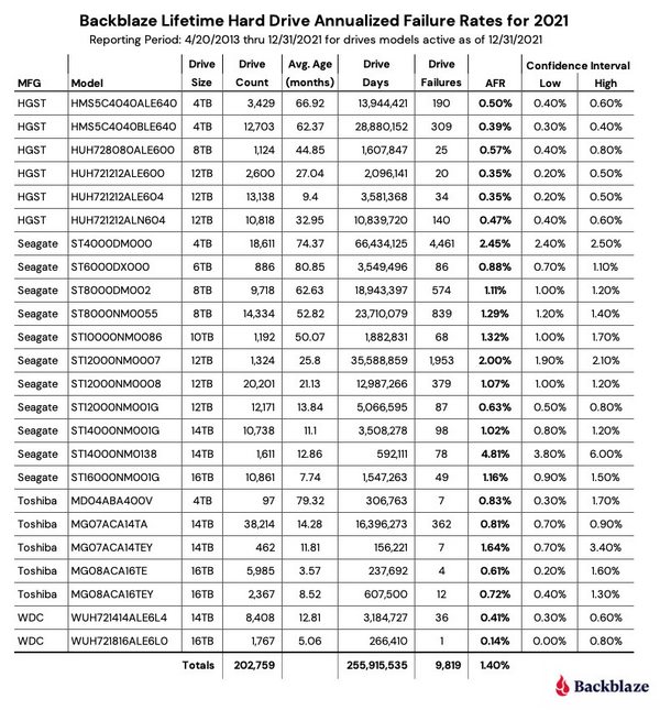 云存储提供商 Backblaze 最近发布了最新的硬盘故障率(AFR)报告,虽然结果不能直接说明所有问题,但仍具有很高的参考价值。