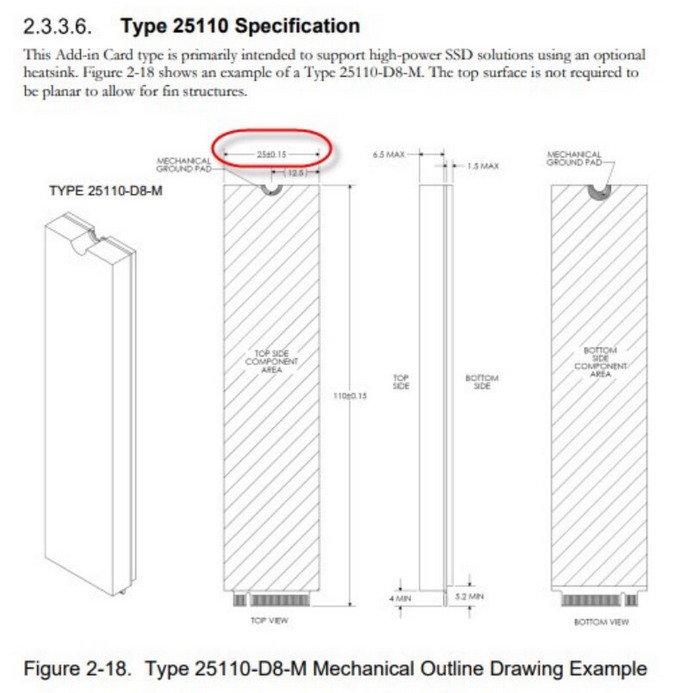 据了解,接下来的PCIe 5.0 M.2 SSD的宽度将从22mm增至25Mm,也就是说未来的常规M.2叫,M.2 2580或25110、2543等。