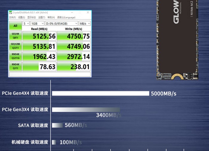 主控未知,采用3D TLC颗粒(单面颗粒),有512GB/1TB和2TB三种容量,兼容 NVMe 1.4 协议,走PCIe 4.0 x4通道,全系提供5GB/s连续读取性能,4.7GB/s写入性能,4K随机性能未透露。