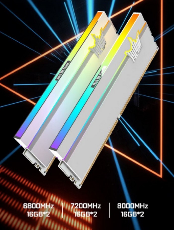 颗粒来自SK海力士的A-Die,支持Intel XMP 3.0技术,除8000MHz版本是黑色PCB外,6800MHz和7200MHz版本都是白色PCB。官方表示,在实机测试中,HOF PRO DDR5-8000内存的读写速度已经超过了120GB/s,而延时仅为56.4ns。