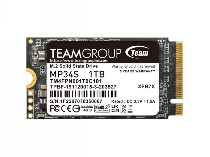 MP34S无故障运行寿命150万小时,512GB写入总量为400TBW,1TB为800TBW,质保5年。