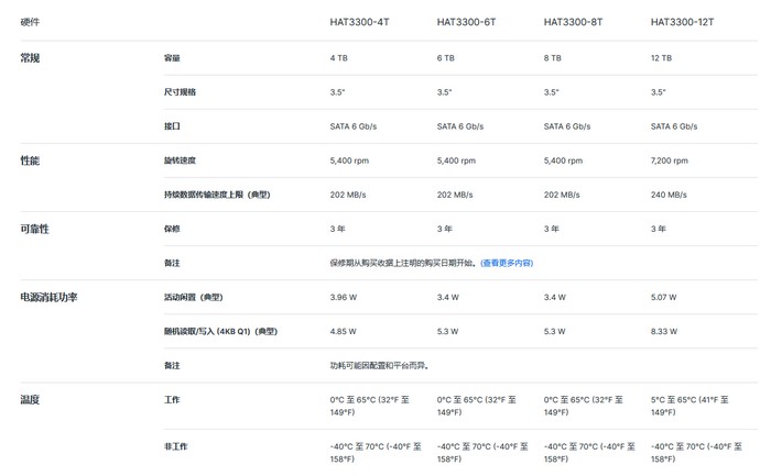 首发有4TB/6TB/8TB和12TB四个容量,都是3.5英寸,走SATA3(6GB/s),除12TB是7200rpm转速外,其余版本都是5400rpm。性能上,最高顺序写入均为202 MB/s。