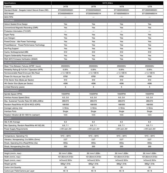 3.5英寸大小,尺寸为:101.85mm、147mm、厚26.1mm、重685g。支持 SATA 3.0 和 SAS 12Gbps 通道,内10碟2.4TB碟片,总计容量24TB。